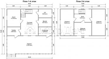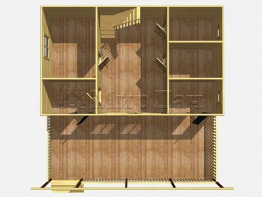 11. Высота помещений: 1 этаж 2,3-2,35 м (17 венцов бруса), 2 этаж - 2,3 м, размер устанавливается от балок межэтажного перекрытия до балок перекрытия второго этажа